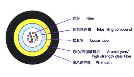 The fibers,250μm, either of single-mode or multimode type, are positioned in a loose tube made
